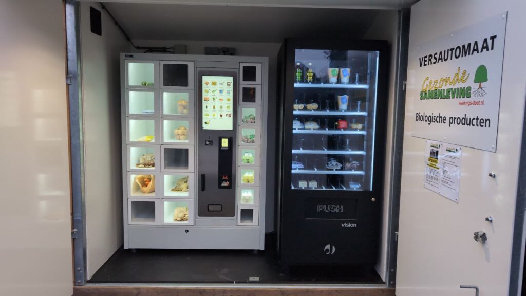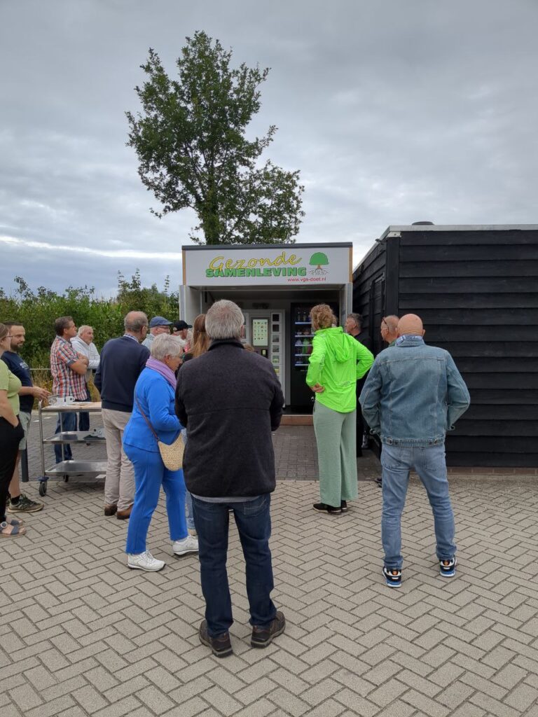 Na maanden van voorbereiding is het zover. De afgelopen 2 weken hebben we proefgedraaid en hebben gezien die alles goed werkt. Zowel de lockers als de gekoelde versautomaat functioneren naar behoren. De producten worden mooi gepresenteerd in de fraaie versautomaten. Betaling is heel makkelijk, nu nog alleen contant, hoeft niet gepast, de automaat geeft wisselgeld. Binnenkort kan er ook gepind worden.