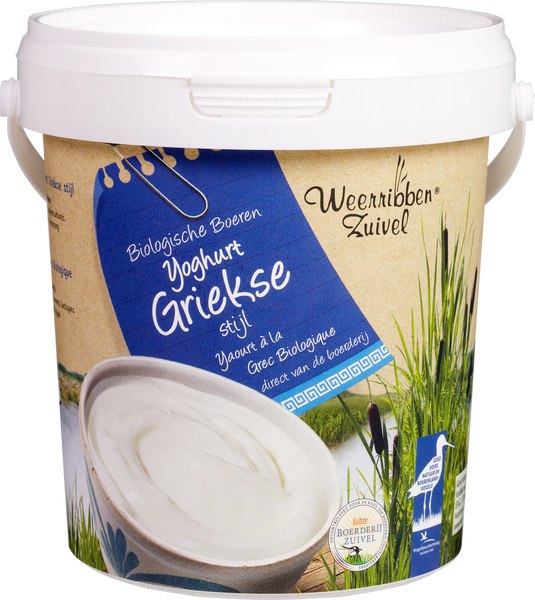 De biologische Griekse yoghurt van Weerribben Zuivel is heerlijk romig en zacht van smaak. De yoghurt is bereid op basis van volle melk en room en heeft een gemiddeld vetgehalte van 10%.